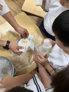 「できた!」「ほんとうにバターになった」と驚きの声がたくさん聞こえました。